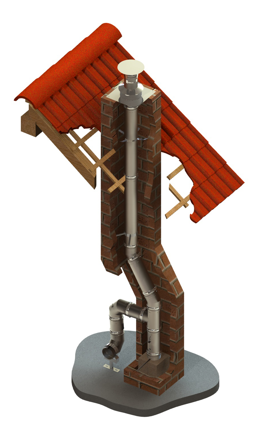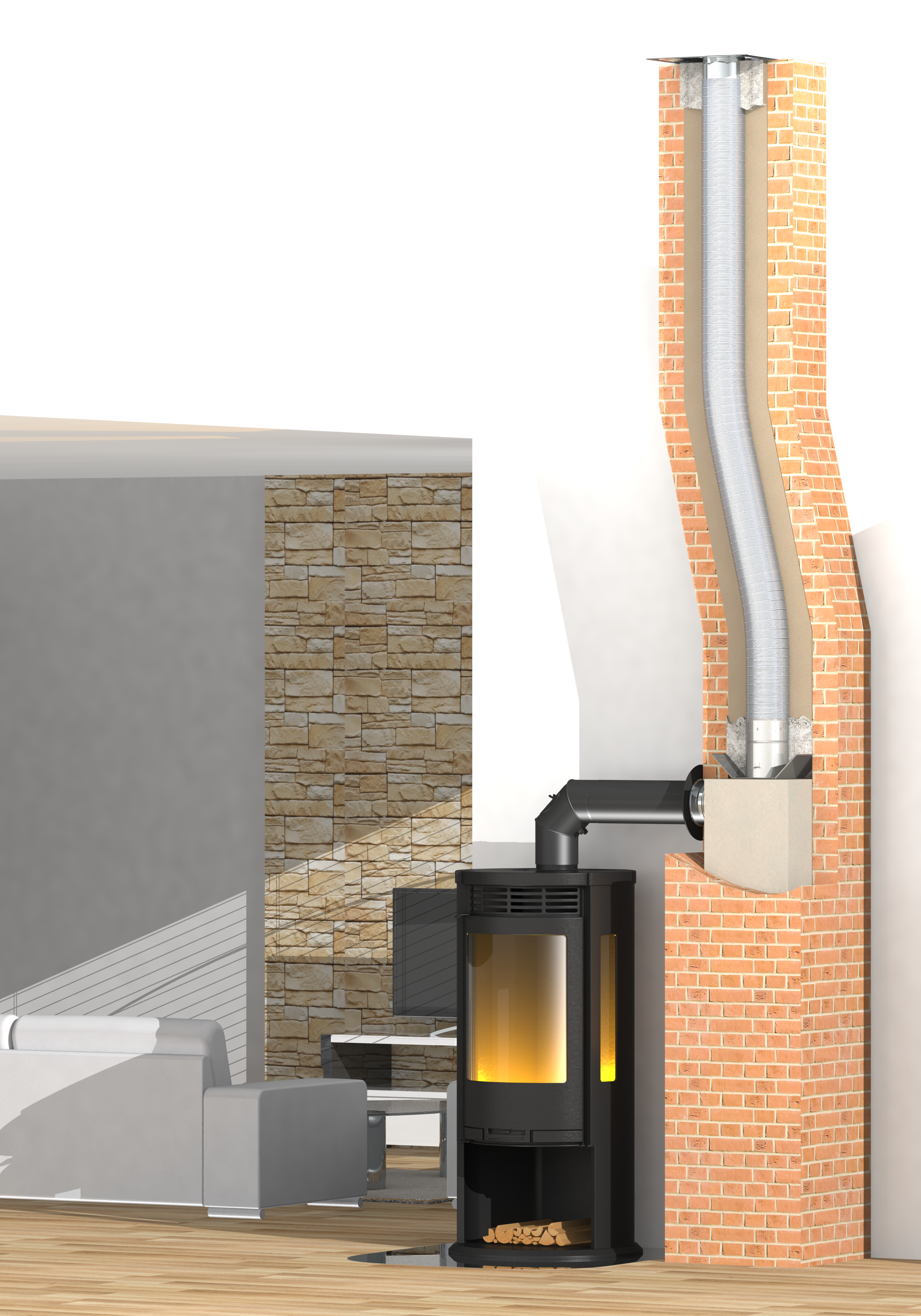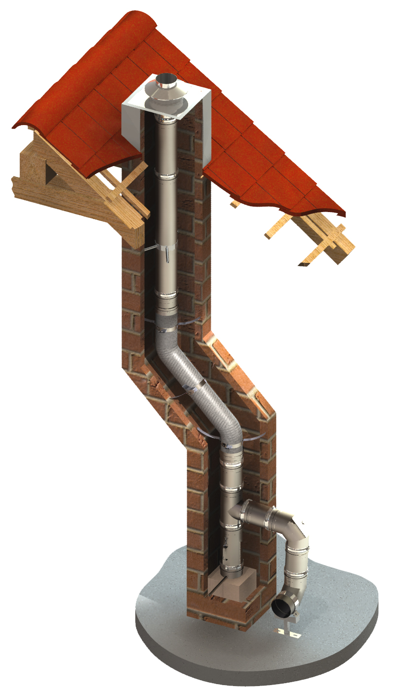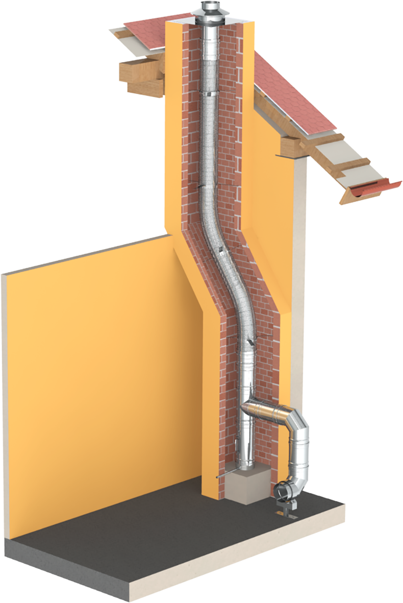Flexible Edelstahlrohre finden Ihre Verwendung hauptsächlich bei verzogen gemauerten Rauchfängen.