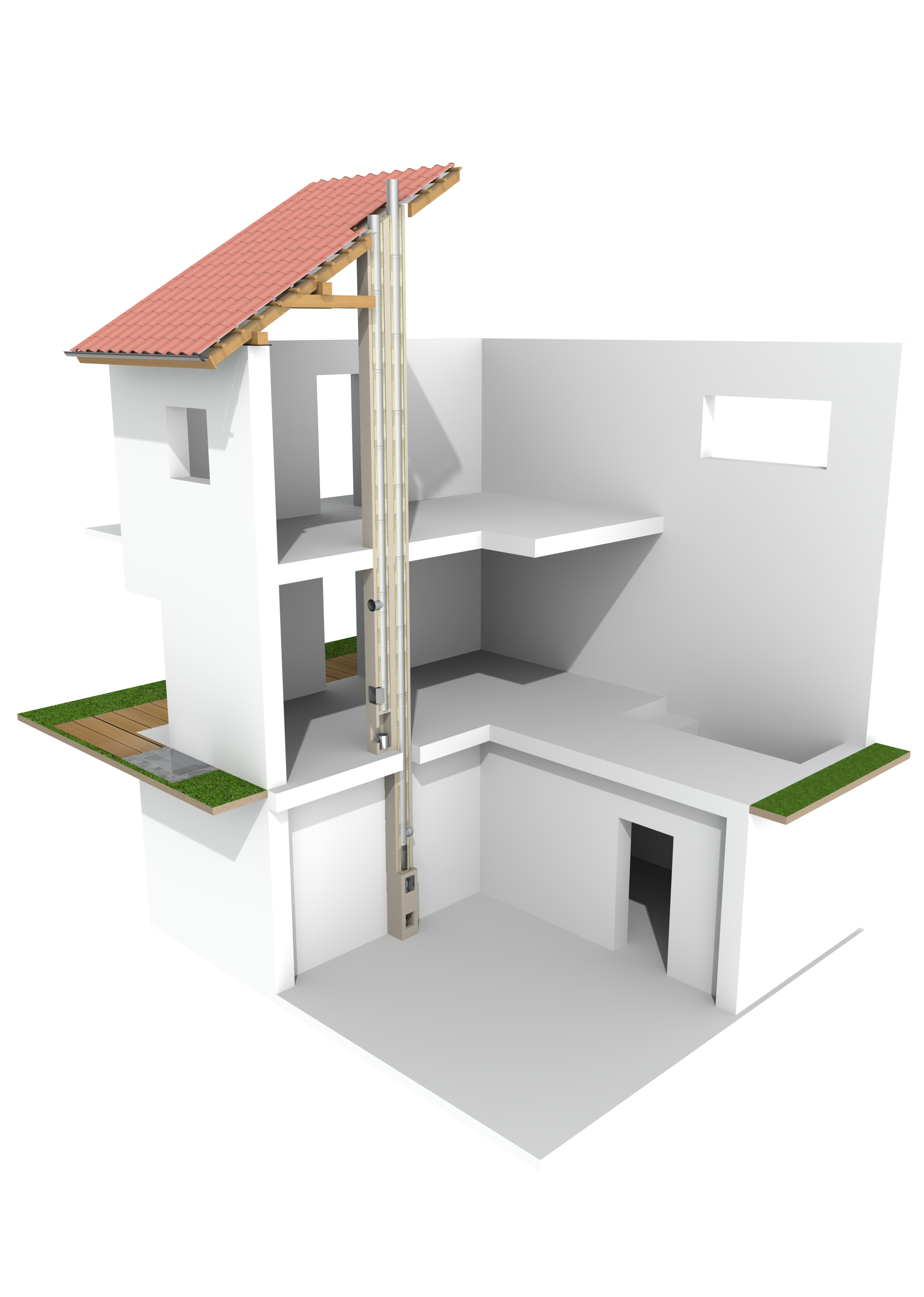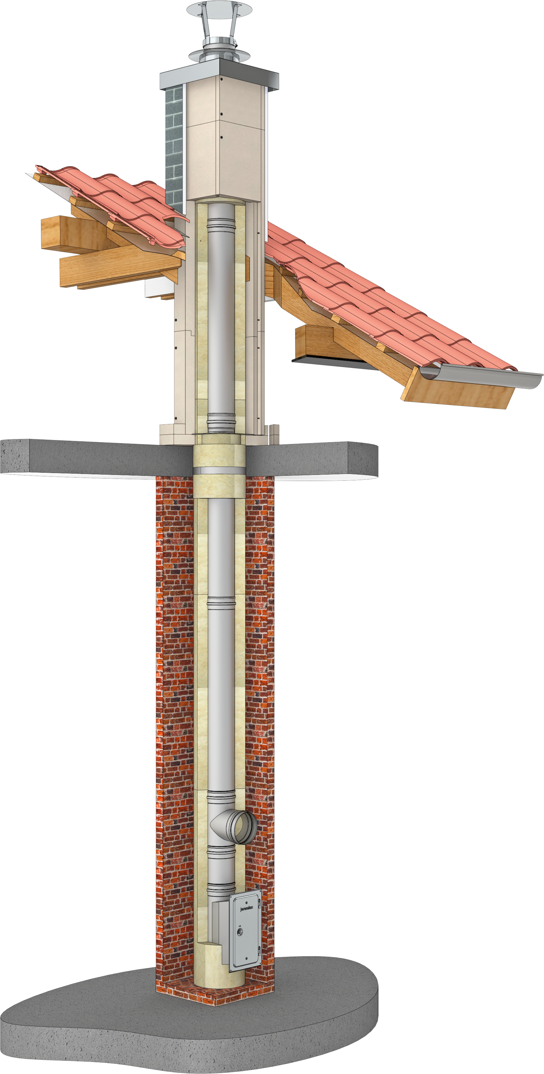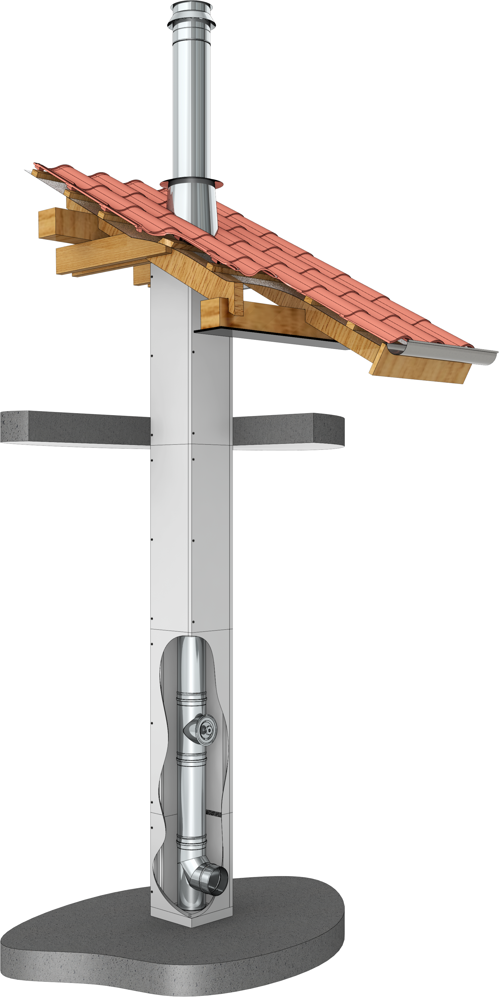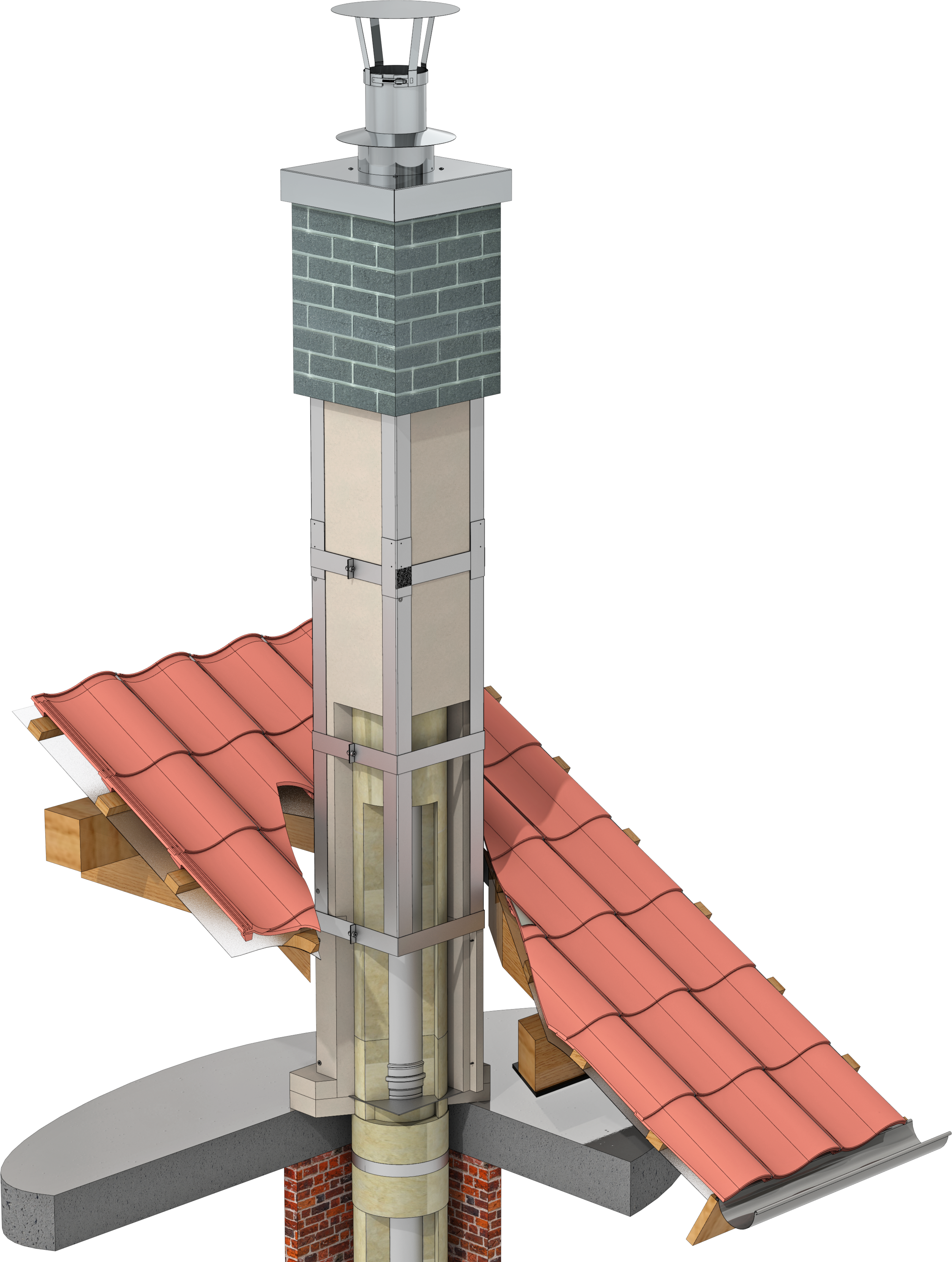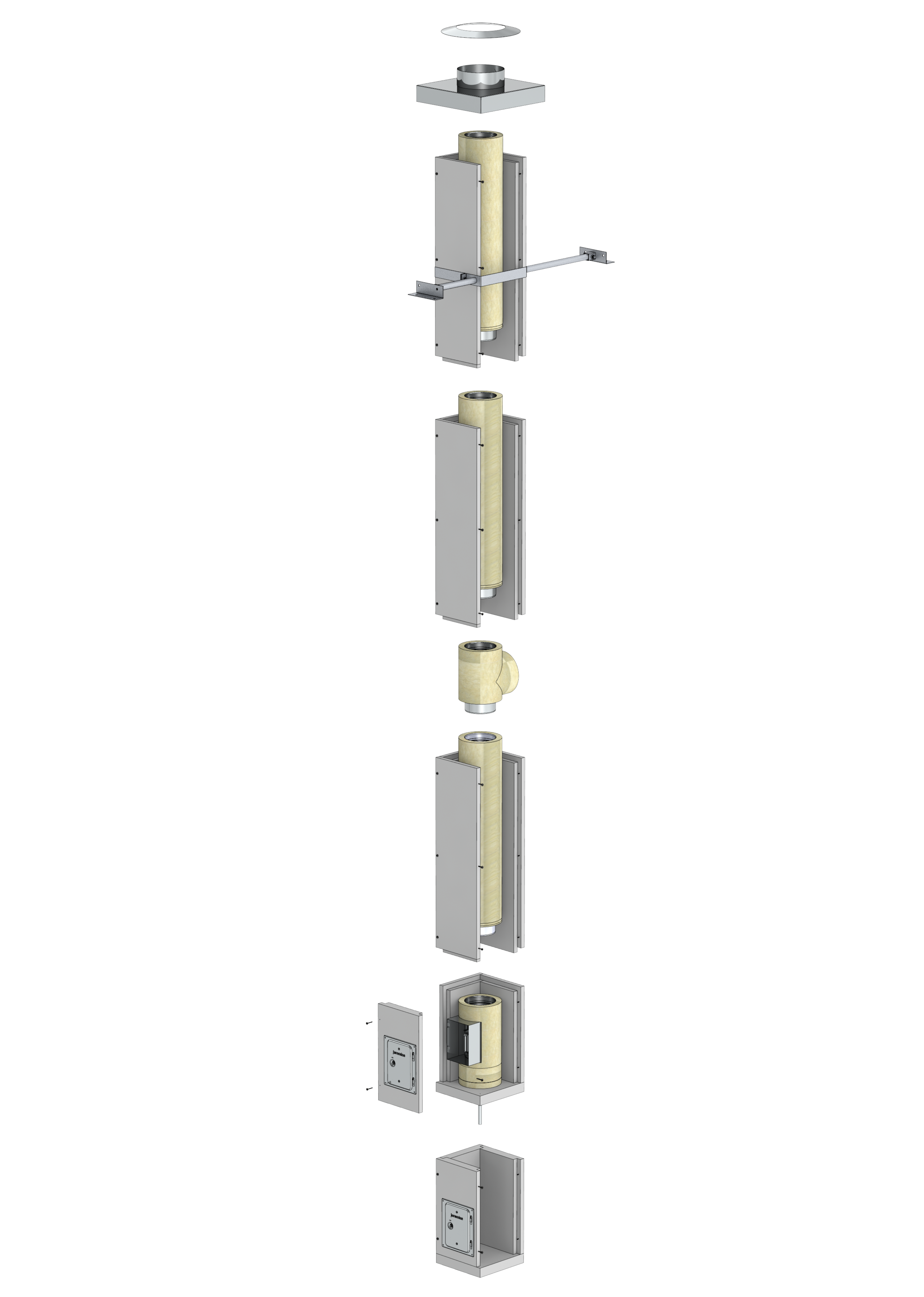 Unsere Leichtbauschacht-Kaminsysteme bestehen aus einer außen-liegenden Calcium-Silikat Brandschutzplatten Verkleidung sowie einem Innenrohr aus, hochlegiertem, austenitischen Edelstahl mit dazwischenliegender Mineralfaserisolierung. In Ausnahmefällen kann es auch notwendig sein einen doppelwandigen Edelstahlkamin als Innenrohr zu verwenden.